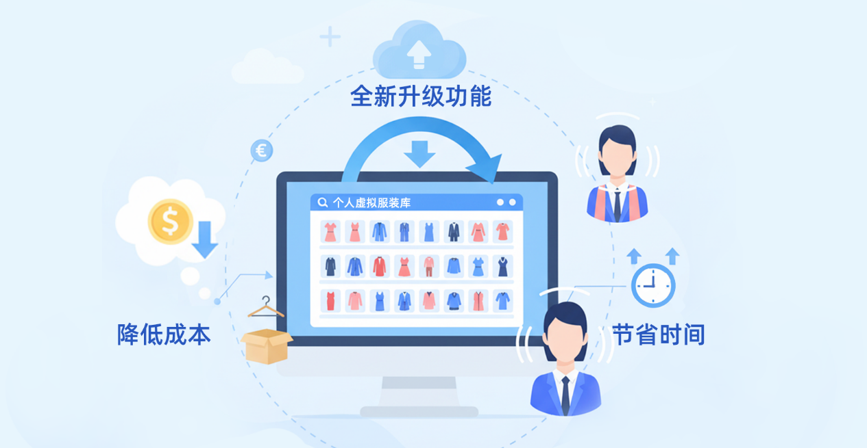升级后新增个人虚拟服装库模块,用户可自由选择、搭配虚拟服装素材应用于数字人分身形象。这一功能彻底改变传统创作中依赖实体服装的模式,最大限度降低内容创作者在服装购置、租赁、存储上的成本投入,同时省去服装搭配、场景适配的时间,让数字人形象塑造更灵活,大幅提升创作效率。