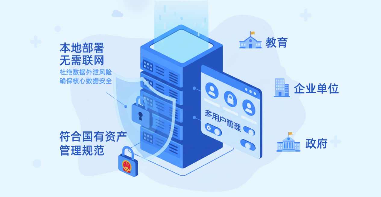 系统支持本地化部署与离线使用,所有AI运算均在本地完成,无需联网,从根源杜绝数据外泄风险,符合国有资产管理规范,确保核心数据与系统资产归属清晰、可控。同时采用多用户管理模式,管理员可统一配置用户账号、AI模型状态及系统参数,每个用户数据独立存储,为对数据安全要求高的政府、教育及企业单位筑牢隐私保护屏障。
