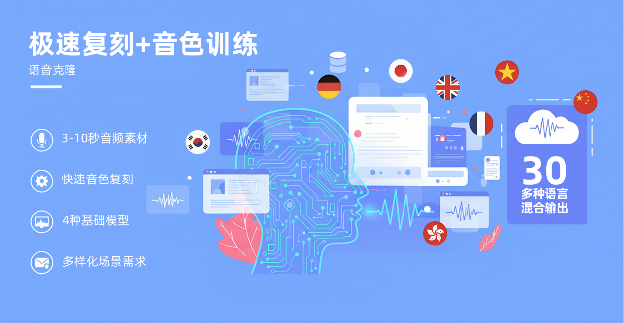 系统支持“极速复刻”与“音色训练”两种模式,覆盖音色导入、创建、编辑、检索全环节,让每个人都能拥有独享的声音库。用户仅需提供3-10秒音频,即可快速复刻专属音色;若需更高精度,通过不超过1分钟的原声录制,即可完成音色微调训练,全程自动化且耗时不超过10分钟。生成的AI语音模型可长期保存、反复调用,搭配中文(含粤语)、英文、日文、韩文等30多种语言及混合语种输出能力,还能灵活调节语速,同步生成带字幕的音频文件,极大丰富内容输出的声音表现力,轻松满足配音、播报等多样化场景需求。此外,系统内置4种无版权争议的基础声音模型库,无需训练即可直接调用,降低创作门槛。